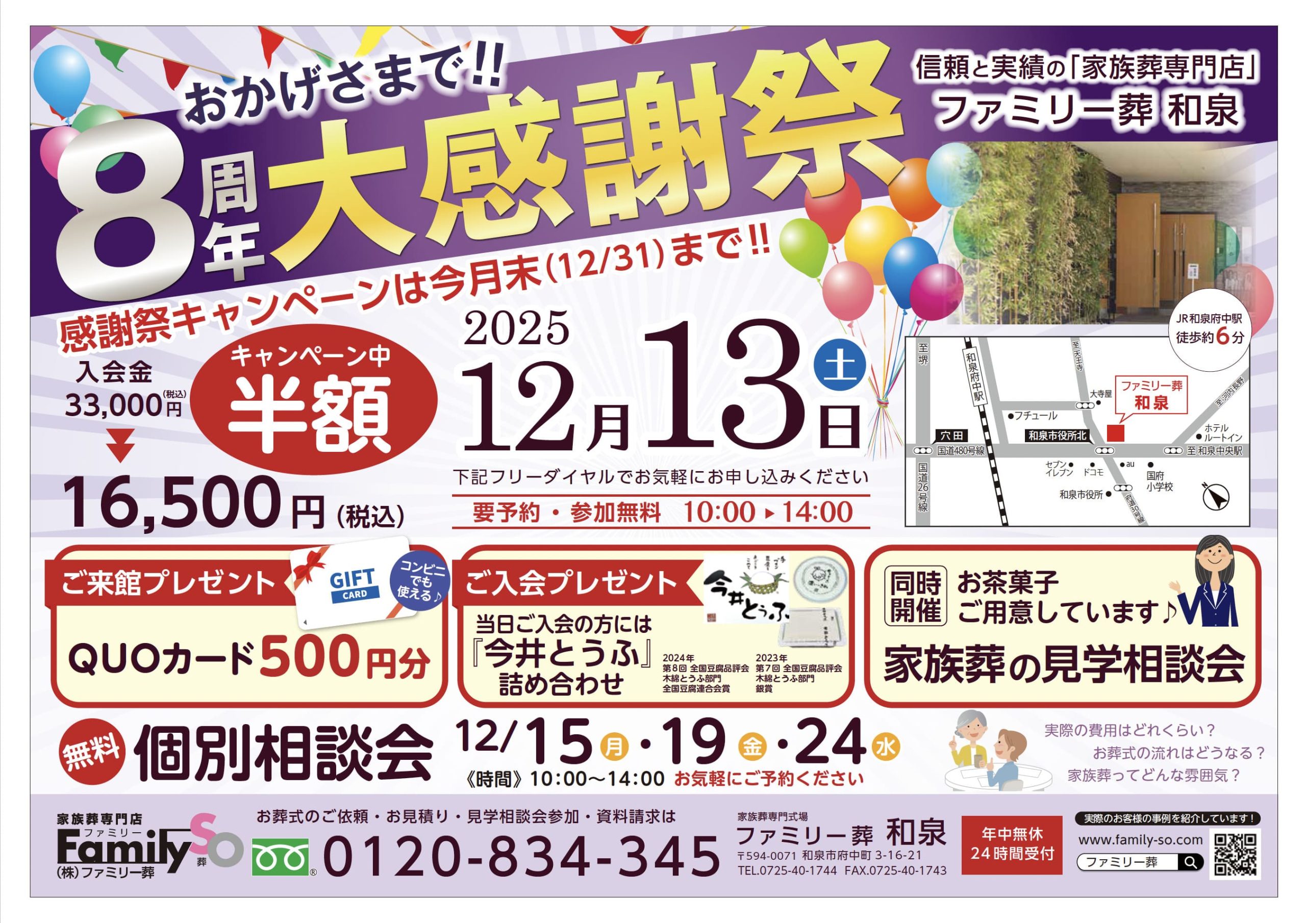 ファミリー葬では、毎月の見学相談会に加え、